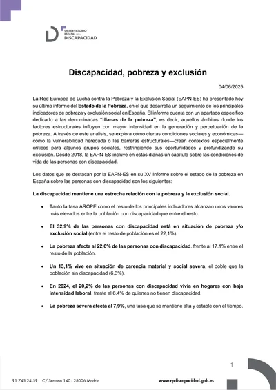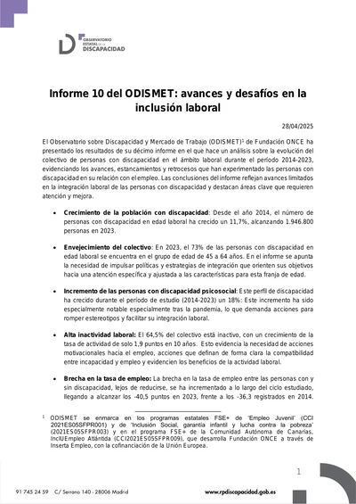 Novedades Últimos documentos publicados https://oed.acentoweb.com https://oed.acentoweb.com/@@site-logo/logo.webp Novedades Últimos documentos publicados Microinforme sobre Inclusión Educativa y Discapacidad en la UE (2024-2025) Análisis de impacto sobre el abandono escolar temprano en jóvenes con discapacidad (Datos de Eurostat noviembre 2025). El acceso de las personas con discapacidad al empleo público en la AGE. (OEP 2023 y 2024) Indicadores de inclusión social de la población con discapacidad a partir de los informes Olivenza Microinforme Violencia contra la Infancia y la Adolescencia con Discapacidad en España Más del 65 por ciento de las mujeres con discapacidad sufren violencia INFORME OLIVENZA. Situación de las Personas con Discapacidad en España 2024 Discapacidad, pobreza y exclusión Una delegación del CERMI y del Observatorio Estatal de la Discapacidad visita el Centro Español del Subtitulado y la Audiodescripción (CESyA) Informe 10 del ODISMET: avances y desafíos en la inclusión laboral CERMI y el Observatorio Estatal de la Discapacidad refuerzan su colaboración con el Centro de Normalización Lingüística de la Lengua de Signos Española (CNLSE) Personas con Discapacidad, Pobreza y Exclusión La situación de las personas LGTBI+ con discapacidad en España 1 (actual) 2 3 4 5 6 7 ... 23 12 elementos siguientes >