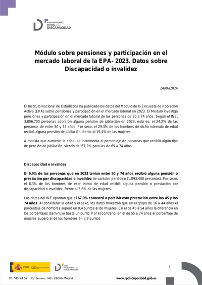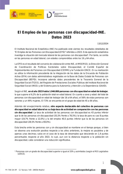 Novedades Últimos documentos publicados https://oed.acentoweb.com https://oed.acentoweb.com/@@site-logo/logo.webp Novedades Últimos documentos publicados La autonomía del paciente con discapacidad: propuestas para asegurar el respeto a la voluntad y la toma de decisiones con apoyos Las familias con personas con discapacidad en España: necesidades, demandas, apoyos y condiciones para el bienestar Plan de acción para la promoción y protección de los derechos de las mujeres y las niñas con discapacidad: estudio completo, resumen e infografía El Empleo de las personas con discapacidad-INE.Datos 2023 Las personas con discapacidad siguen soportando un riesgo de pobreza y/o exclusión más elevado que aquellas que no tienen discapacidad La efectividad en el ordenamiento español de las decisiones de órganos de seguimiento de tratados internacionales de derechos humanos Personas con discapacidad incluidas en las declaraciones del IRPF de 2022 Las personas con discapacidad cobran 5.067 euros menos que el resto de trabajadores Personas con discapacidad administrativamente reconocida en España. 2023 Vida Laboral de las Personas con Discapacidad 2022 Módulo sobre pensiones y participación en el mercado laboral de la EPA- 2023. Datos sobre Discapacidad o invalidez Se aprueba la Estrategia Estatal para un nuevo modelo de cuidados en la comunidad < 12 elementos anteriores 1 2 (actual) 3 4 5 6 7 ... 23 12 elementos siguientes >